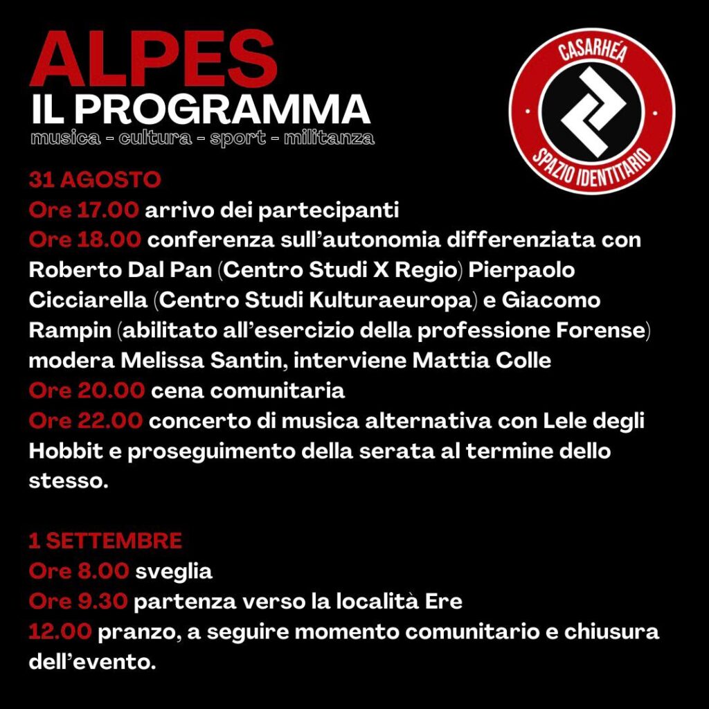 EVENTIALPES 2024Kulturaeuropa21/08/2024 IL PROGRAMMA DELL’ EVENTO 31 agosto – 1 settembre 2024, presso Casarhéa – Spazio Identitario in Via Villiago 1, Sedico, Belluno. Condividi:Tweet Condividi su WhatsApp (Si apre in una nuova finestra) WhatsApp Stampa (Si apre in una nuova finestra) Stampa Invia un link a un amico via e-mail (Si apre in una nuova finestra) E-mail Lascia una rispostaCancella rispostaIl tuo indirizzo email non sarà pubblicato. I campi obbligatori sono contrassegnati * Nome * Email * Sito web Aggiungi commento * Salva il mio nome, email e sito web in questo browser per la prossima volta che commento.Invia commento Δ