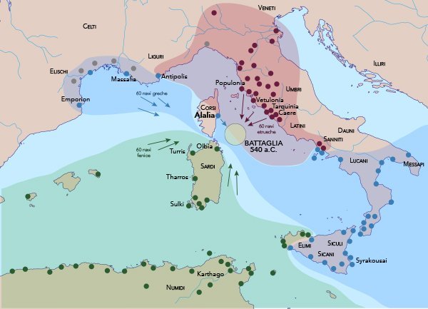 La battaglia di Aleria (540 a.C.) fu il punto di rottura dell’equilibrio strategico instauratosi nel mar Tirreno sin dall’VIII secolo e fu pertanto il punto d’inizio della fase declinante della civiltà etrusca.