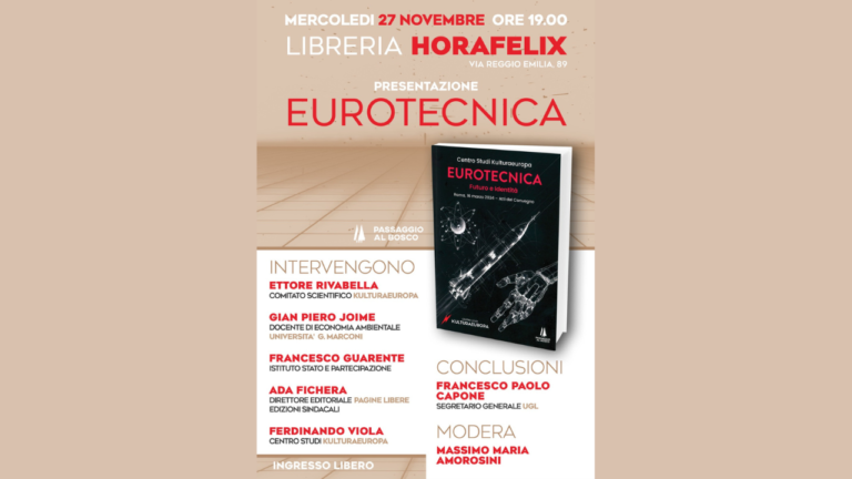 EUROPA ACCELERAZIONE POTENZA01/12/2024EUROTECNICA- Horafelix 27 Novembre 2024Kulturaeuropa rilancia il volume Eurotecnica, in un convegno pubblico a…